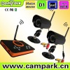 2.4GHz CCD Night Vision Wireless Cameras+SD DVR Video Recorder Receiver1. Record upon motion. 2. Support SD card recording, up to 16GB 3. Audio and Video. 4. With time stamp on videos. 5. Support 4 channels wireless cameras, and one wired camera AV In. 6. Support loop function. 7. Support overwritten. 8. Support playback on TV/monitor/computer. 9. DIY installation, key-press switch, easy operation. Specifications Camera Frequency1CH:2414MHz,2CH:2432MHz,3CH:2450MHz,4CH:2468MHzImaging Sensor1/4 inch Color CCDNight Vision Range10-15 meters Horizontal Resolution420 TV linesVideo Signal OutputPAL/NTSCView Angle60 degreesMinimum Illumination0 luxConsumption Current340mA MAXAntennaOmni 3dBiModulation ModeFMBandwidth18MHzTransmission Range100 meters without any blockWorking Temperature-10 +40 degrees celsiusPower SupplyAC 100 - 240V DC 12V 500mAReceiver FrequencyISM 2400 2483.5MHz (4 Channel)AntennaOmni 3dBiReceiving SensitivityLess than -80dBmVideo Output0.7-1.2Vp-p@75Ω S/N >38DBAudio Output0.7-1.2Vp-p@75Ω S/N >38DBPhoto FormatJPEGVideo FormatAVIVideo ResolutionD1 (720*480)StorageSD cardCapacityUp to 16GBCurrencyLess than 750mAOperating Temperature-20 +50 degrees celsiusPower supplyAC 100 - 240V DC 5V 500mA